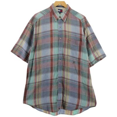 5. 古着 トミーヒルフィガー TOMMY HILFIGER 半袖 ボタンダウン チェックシャツ メンズL相当 /eaa536573 【中古】 【250412】 【SS2509_30】