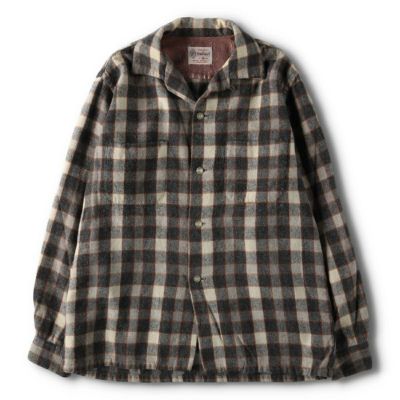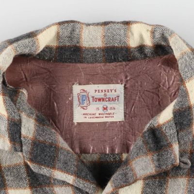 5. 古着 50年代 タウンクラフト TOWN CRAFT チェック柄 オープンカラー ウールシャツ メンズM相当 ヴィンテージ /evb010114 【中古】 【250314】 【V2503】