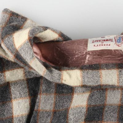 50年代 TOWNCRAFT チェック柄オープンカラーウールシャツです。タウンクラフトはアメリカの大手百貨店J.C.ペニーのプライベートブランドとして展開され、主にカジュアルウェアやワークウェアを中心に高品質なアイテムを生み出した、古着で人気ブランド。人気のボックスシャツでカジュアルに着こなしやすいシルエットが魅力です。ブランド、形と役がそろった一着です。