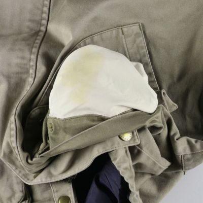 ●内側前、首元前立て裏・左腹部ポケット内に汚れ
