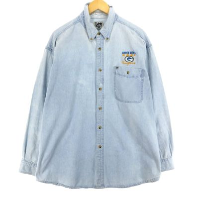3. 古着 リー Lee SPORT NFL GREEN BAY PACKERS グリーンベイパッカーズ 長袖 ボタンダウンデニムシャツ メンズXL /eaa456615 【中古】 【240615】 【SS2509_30】