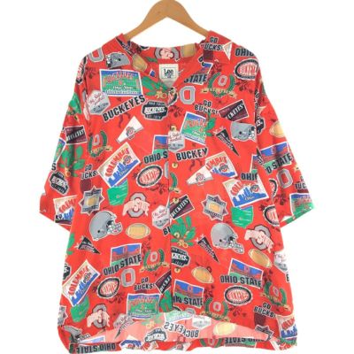 5. 古着 00年代 リー Lee SPORT 総柄 OHIO STATE オハイオ州立大学 半袖 オープンカラー レーヨンシャツ ボックスシャツ XL メンズXL相当 /eaa558331 【中古】 【250616】