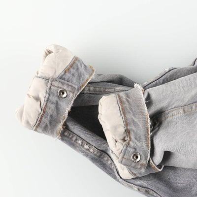 USEDデニムですので使用感、擦れ、色落ちなどございますが、まだまだご愛用していただけます。 古着という事をご理解の上ご注文よろしくお願いします。 【状態追記】 ●前、左胸・両腹部・両サイドポケット内・左袖・両袖先に汚れ ●前、両脇下・裾・両袖・左袖先に擦れ ●前、右袖先に裂け ●前、左袖先に糸抜け ●後、両袖先に汚れ ●後、両袖・右袖先・裾に擦れ ●内、左腹部に汚れ ●内、両裾に擦れ ●内、両袖先に裂け ●内、右袖に糸抜け