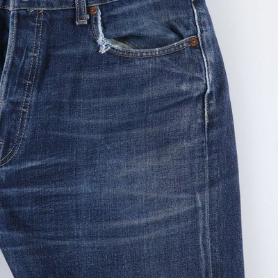 1800 年代後半に作られ、全てのジーンズの原型と言われるモデル。ダブルエックスとは1 インチあたり9 オンスという当時最も重厚だったダブル・エクストラ・ヘビー、通称ダブルエックス。1965 年のXX 表記が消えるまでのヴィンテージ商品をご紹介。主なディテールは、隠しリベット、シングルステッチ、V ステッチ、革パッチ・紙パッチ、E 赤タブ、赤耳、ベルトループセンター外れ、イエローステッチ。