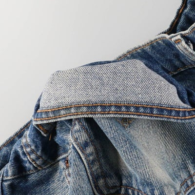 1980 年代になると、リーバイスは市場拡大によりヨーロッパでの生産を始め、トルコ製やイギリス製、スペイン製などが生産されました。ユーロモデルの魅力は、80 年代のアメリカ生産物は品質の向上によりそれまでのヴィンテージデニムの風合いが薄れ、メリハリの少ない、均一な色落ちをする生地になりました。一方、ヨーロッパでは、この時代アメリカで使われなくなった染料を継続して使用しており、80 年代以降の製品でもヴィンテージに近い色落ち、縦落ちのものが多くみられます。