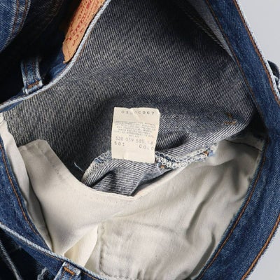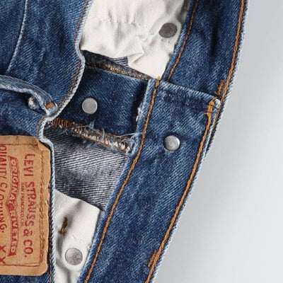 フラッシャー記述の"1966" より命名されました。66 ならではの特徴としては、パッチの501 の数字の上部分に「CARE INSTRUCTION」という文字が入っています。これは「内側に説明があり」ということで、ジッパーの裏部分に洗濯の注意書きが書かれた「白タグ」が付いています。主なディテールはe 赤タブ、バックポケット裏の縫製がシングルステッチ、赤耳、イエローステッチ。