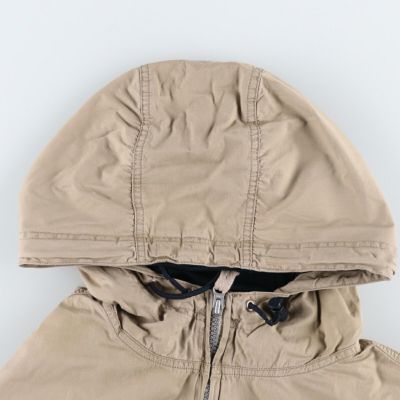 ●前、フード・右肩・両袖先・腹部に汚れ フード調節ひもに型ついています 左脇にリペア跡