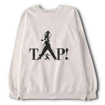 1989年に公開された映画『TAP!(邦題:タップ)』ムービースウェットです。伝説的なタップダンサーであるグレゴリー・ハインズが主演し、サミー・デイヴィスJr.ら往年の名ダンサーも集結。タップダンスの復興と、その圧倒的な魅力を世界に知らしめた名作です。Aの部分がダンサーになっている良デザイン。マイナーな作品ですが、貴重な一着です。