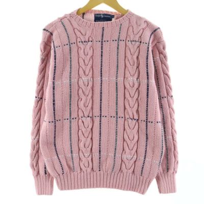 5. ラルフローレン Ralph Lauren bergdorf goodman チェック柄 ケーブル編み コットンニットセーター レディースL /eaa111220 【210115】