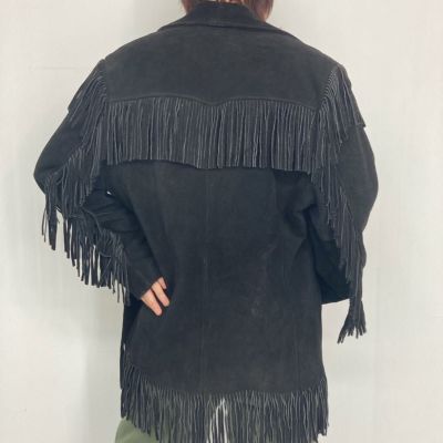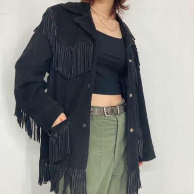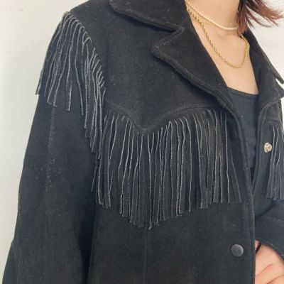3. 古着 Etcellel フリンジ付き レザージャケット USA製 レディースL /eaa293985 【中古】【エルル221118】 【221113】 【LP2401】