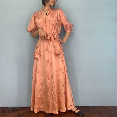 古着 40年代 UNKNOWN 刺繍 マキシ丈 サテン 半袖 ワンピース レディースM ヴィンテージ /eaa246501 【中古】【エルル220624】 【220625】 ss2501_10