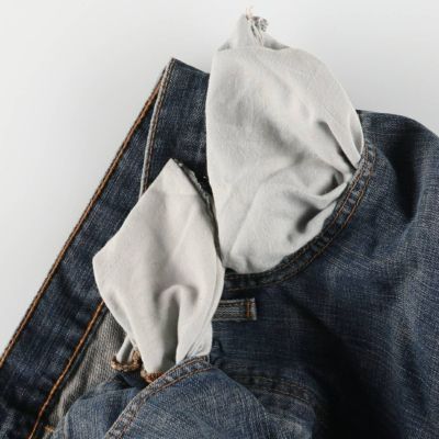 ●前、左右ポケット内・左右ポケット口裏・左右ポケット内袋・左下腹部裏に汚れ