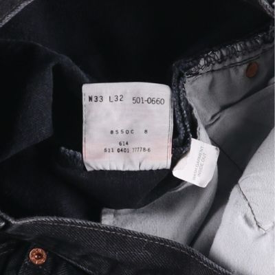 USA製リーバイス501のブラックモデル「0660」。ストレートシルエットで、無骨な佇まいが魅力。アメリカ製最終期の希少なモデルで、まだまだ色落ちが楽しめる一着。