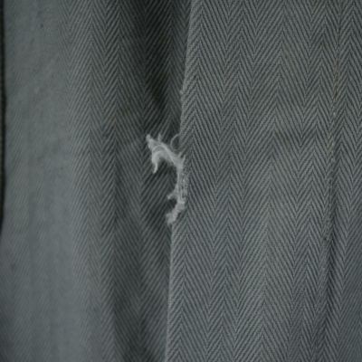●前、右襟、胸部、左袖口、下腹部、両足裾汚れ