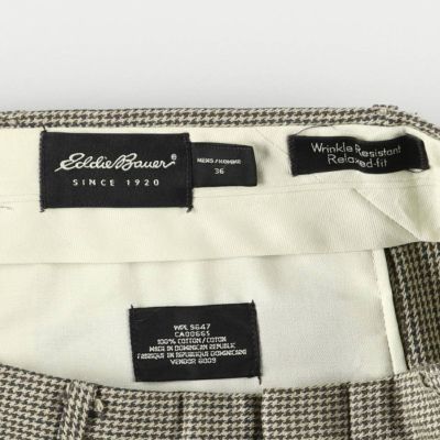 6. 古着 エディーバウアー Eddie Bauer Wrinkle Resistant Relaxed fit 千鳥格子柄 ツータック コットン スラックスパンツ メンズw35相当 /eaa566600 【中古】 【250720】