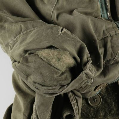 ●内側、右裾・ジップエンド留め糸・右袖口にリペア跡
