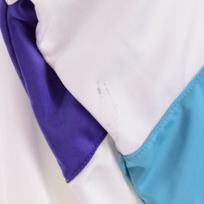 ●前、両袖口・襟・真ん中腹部・左腰・右袖肘付近汚れ