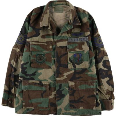 古着 90年代 米軍実品 迷彩柄 ウッドランドカモ リップストップ B.D.U ミリタリージャケット USA製 MEDIUM-SHORT メンズM相当 ヴィンテージ /eaa553019 【中古】 【250601】