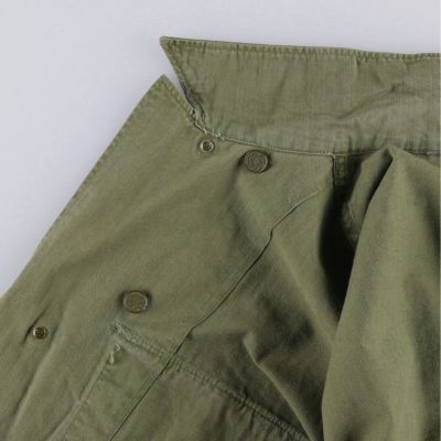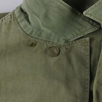 第二次世界大戦期、1940年代に米軍が採用したM-43フィールドジャケット。ヘリンボーンツイル素材が特徴で、機能性と無骨さが魅力。オリジナルのミリタリーウェアとして希少性が高く、ミリタリー好きには必見の一着です。