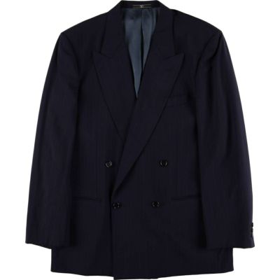 6. 古着 ヴァレンティノ VALENTINO ダブルブレスト ピークドラペル ストライプ柄 ウールテーラードジャケット メンズL相当 /evb029944 【中古】 【250709】
