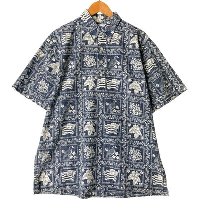 古着 90年代 レインスプーナー REYNSPOONER 水着タグ ビキニタグ 総柄 ライハナセーラー プルオーバー ボタンダウン ハワイアンアロハシャツ ボックスシャツ ハワイ製 メンズL相当 ヴィンテージ /eaa578676 【中古】 【250905】