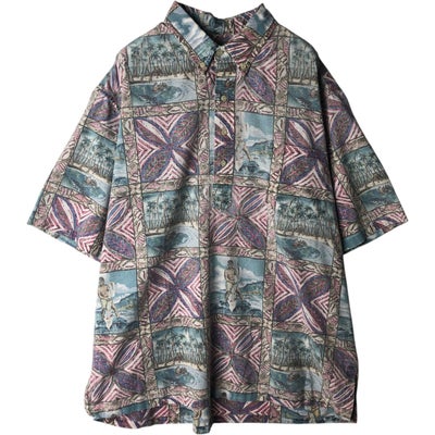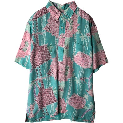 古着 90年代 レインスプーナー REYNSPOONER MELE KALIKIMAKA クリスマス限定モデル 総柄 プルオーバー ボタンダウン ハワイアンアロハシャツ ボックスシャツ ハワイ製 メンズXL相当 ヴィンテージ /eaa635878 【中古】 【260417】