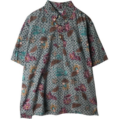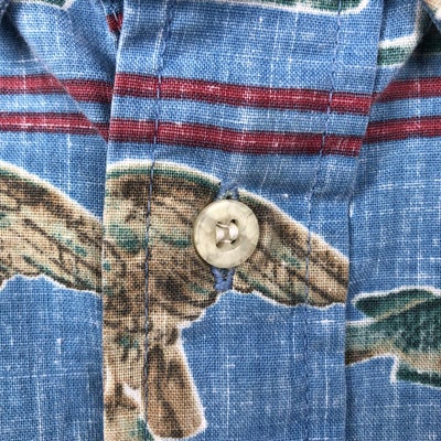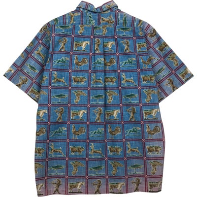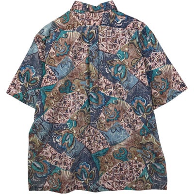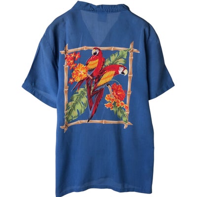 古着 70年代 オーシャンパシフィック Ocean pacific 波乗りタグ サーフタグ 総柄 オウム柄 バックプリント バックパネル オープンカラー ハワイアンアロハシャツ ボックスシャツ メンズM相当 ヴィンテージ /eaa635930 【中古】 【260417】 【GR-UN】