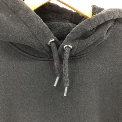 ●前、両フード紐に汚れ、プリント部分一部はげ、腹部ロゴワッペン糸引き