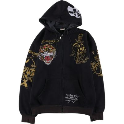 6. 古着 Ed Hardy エドハーディー 虎柄 タイガー柄 ドクロ柄 スカル柄 スウェットフルジップパーカー メンズL相当 /eaa584827 【中古】 【250928】
