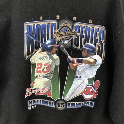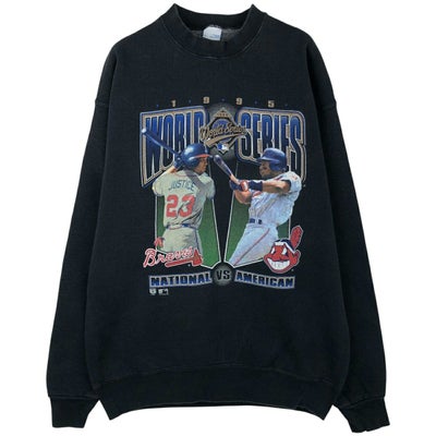 6. 古着 90年代 SALEM MLB ATLANTA BRAVES アトランタブレーブス MLB CLEVELAND INDIANS クリーブランドインディアンス WORLD SERIES プリントスウェットシャツ トレーナー USA製 メンズXL相当 ヴィンテージ /eaa612217 【中古】 【260213】