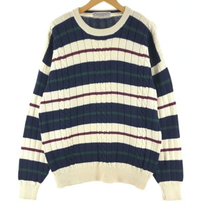 6. 古着 JOHN ASHFORD ボーダー柄 ケーブル編み コットンニットセーター メンズXL /eaa360454 【中古】 【231014】【P2308】 ss2503_50