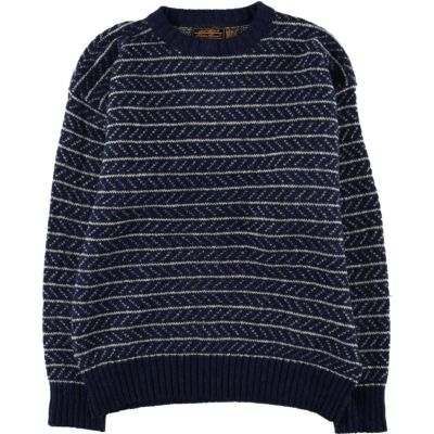 古着 70年代 エディーバウアー Eddie Bauer 黒タグ 総柄 ボーダー柄 バーズアイ柄 ウールニットセーター USA製 メンズXL相当 ヴィンテージ /eaa399988 【中古】 【250817】