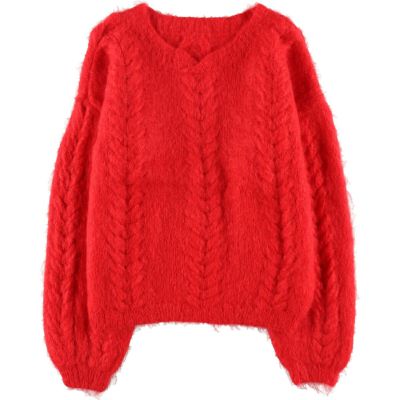 特徴 クルーネック(丸首) / 長袖 / ケーブル編み / 短丈 ショート丈