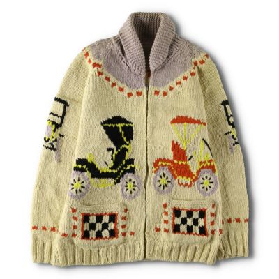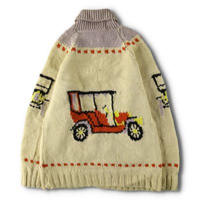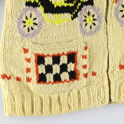 3. 古着 60~70年代 UNKNOWN 総柄 車柄 カウチンセーター メンズL相当 ヴィンテージ /evb008819 【中古】 【241110】 【V2411】 ss2503_30