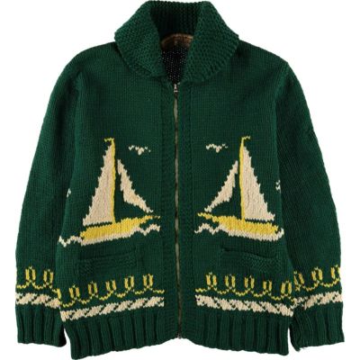 古着 ~70年代 総柄 船柄 カウチンセーター メンズL相当 ヴィンテージ /evb010466 【中古】 【250921】