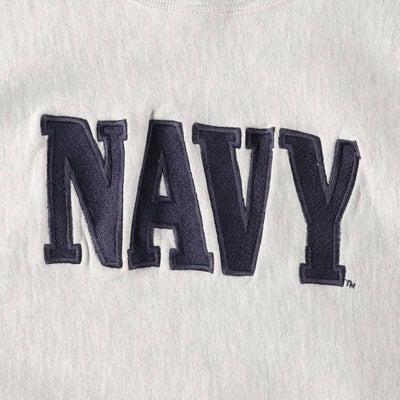 90年代 Champion REVERSE WEAVEト スウェットレーナーです。90年代、通称「刺繍タグ」を冠した一着です。人気で希少なミリタリーモノ。「NAVY」はU.S.NAVY(アメリカ海軍)を指します。コレクターの方にもおすすめの一着です。