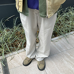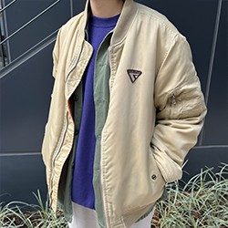 ずっと欲しかった紫のラグラントレーナーを主役に、アイボリーのMA-1で抜け感をプラスしたコーデを組みました。チノパンツで全体をシンプルにまとめた、抜け感のある大人カジュアル。是非参考にしてみてください。