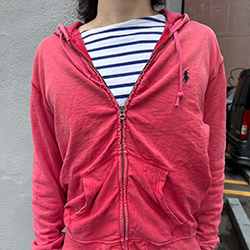 ジップパーカーにチノパンを合わせ、大人カジュアルなスタイリングにしました。全体的にシンプルにならないよう、ボーダーのロングTシャツをチョイス。パーカーのロゴとボーダーのラインカラー、チノパンツの色味を合わせスタイリングに細かな統一感を出しています。