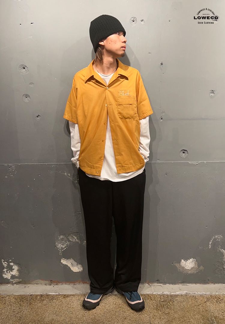 半袖シャツにロンTを合わせたかったので、ストリートテイストに合わせてみました。 主役の半袖シャツは濃いめの色を使うことでよりアイテムとしての存在感を引き立たせ、他のアイテムの色味を抑えることで、色の明度のメリハリがつきコーデに一体感を生むことができます。