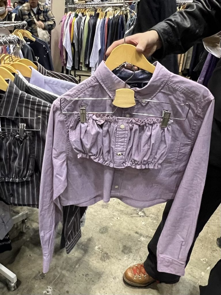 さらに、古着シャツの裾をカットしてクロップド丈やリボン、ビスチェに仕立てるリメイクアイテムも用意されていました。今の気分に寄り添うアップデートが印象的でした。