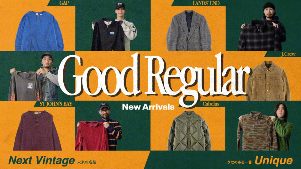 前回大好評だったグッドレギュラー入荷の第三弾。比較的新しい年代を中心に、「Unique」を軸に構成した約150点を一挙に展開します。一癖あるディテールや、どこか引っかかりのあるバランス感覚のアイテムを中心に、今後の評価が楽しみな「Next Vintage」もラインナップ。手に取りやすい価格帯のものも多く、古着に初めて触れる方から、新しいスタイルを探している方まで幅広く楽しめる内容です。