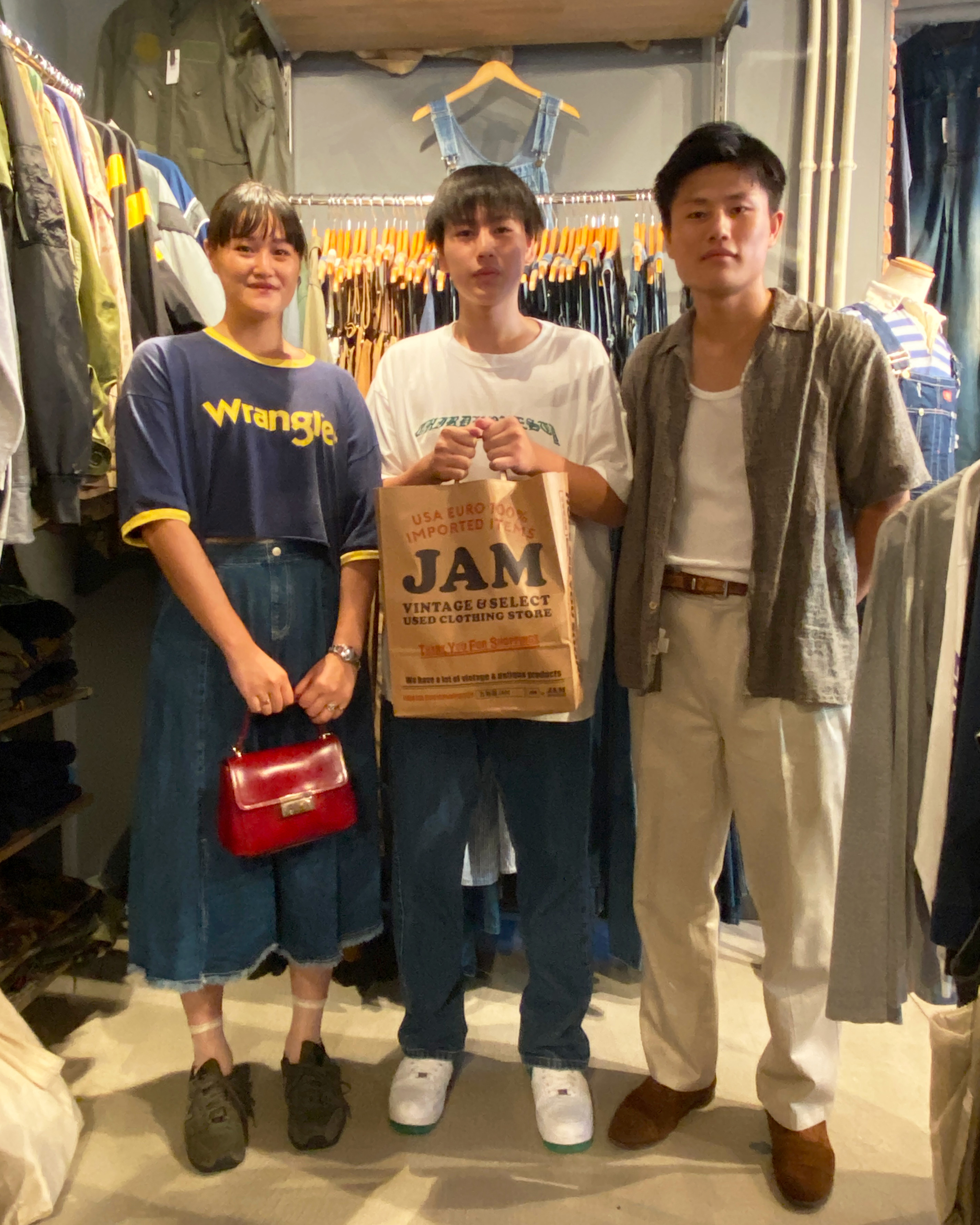 東京から帰省中の長女藍羽さんは普段から東京にある古着屋JAMを利用してくださっていました!そんな彼女は久しぶりに会う弟二人を連れ古着屋巡りへ。お姉さんらしく弟さんのアイテムも購入してあげていました。