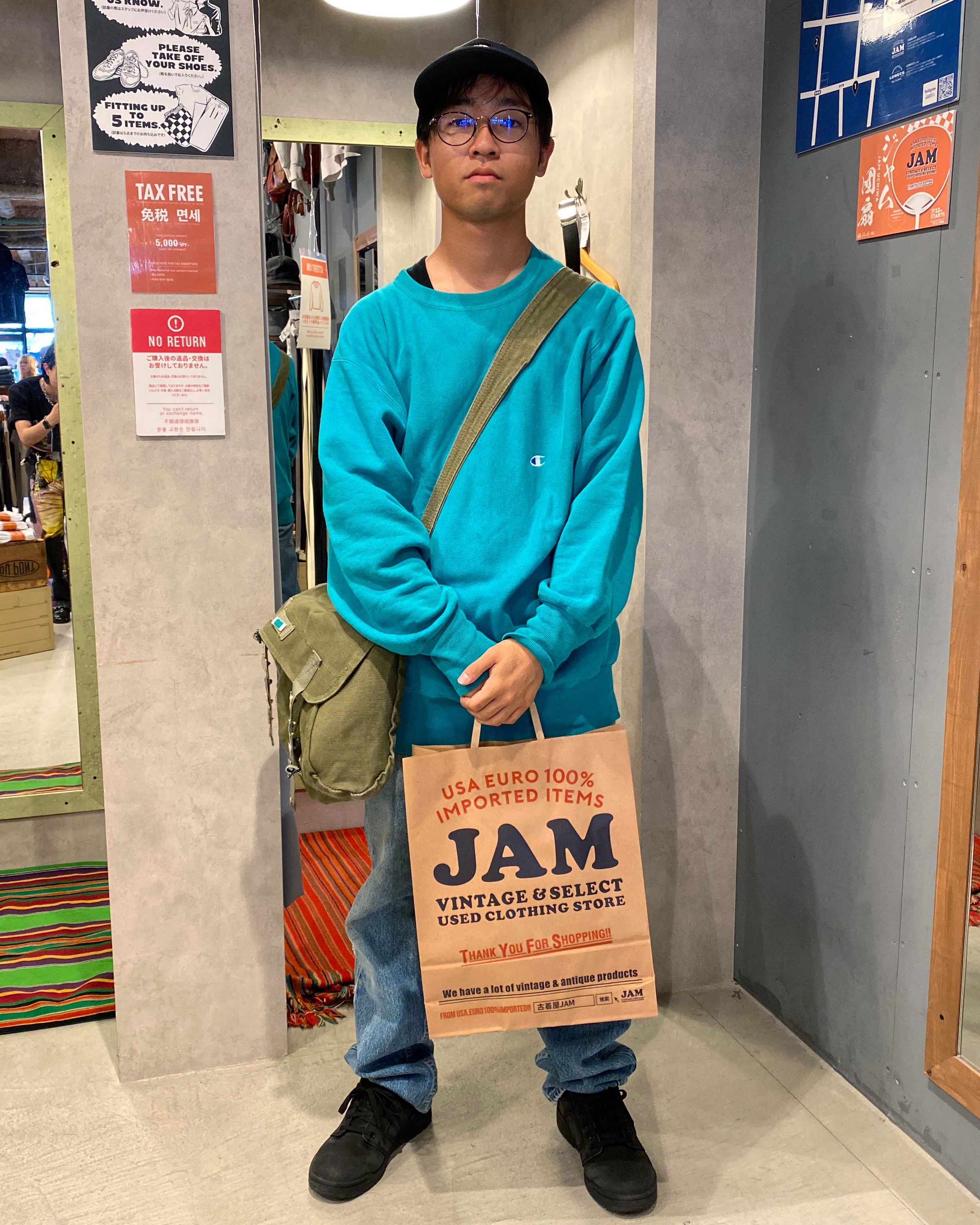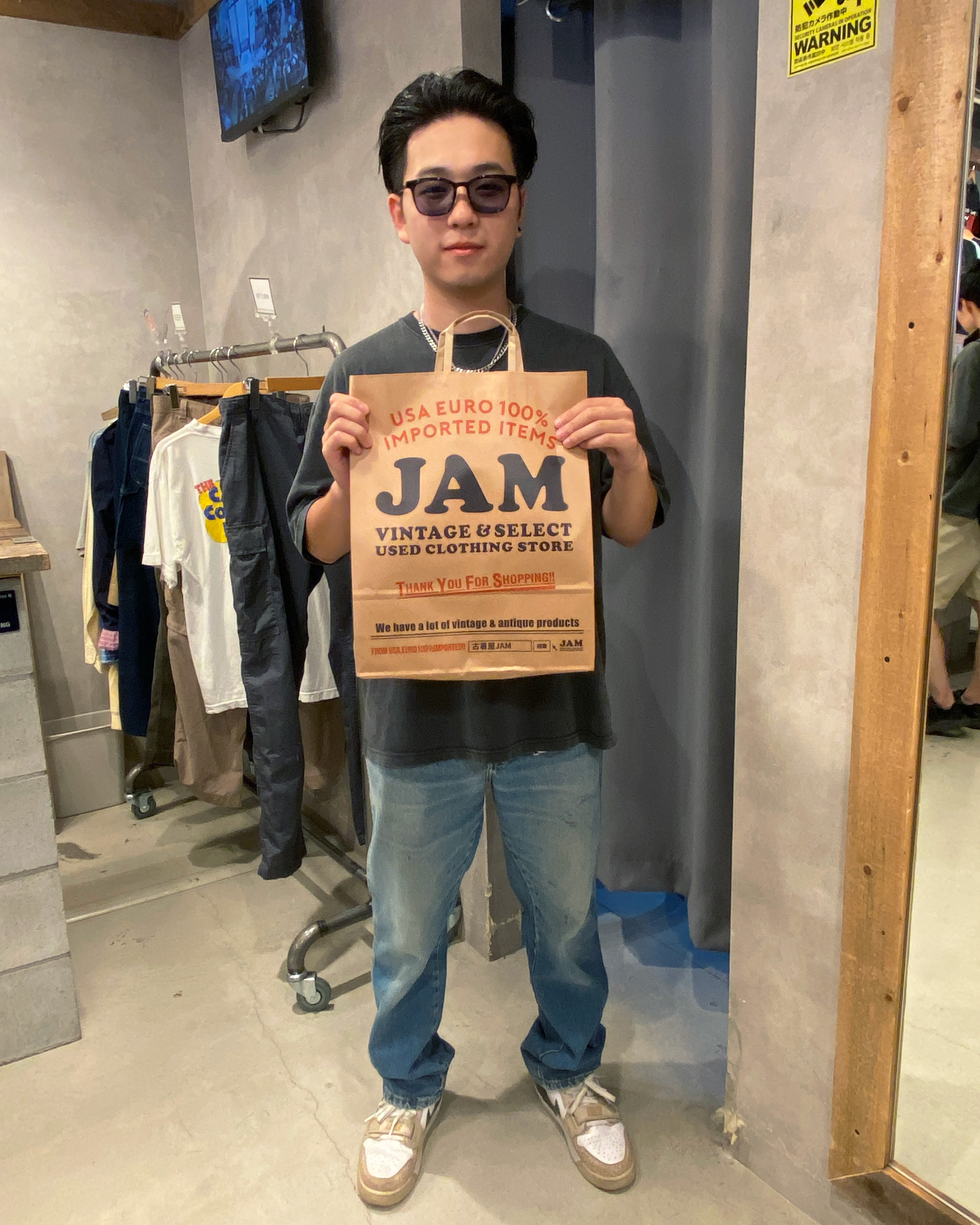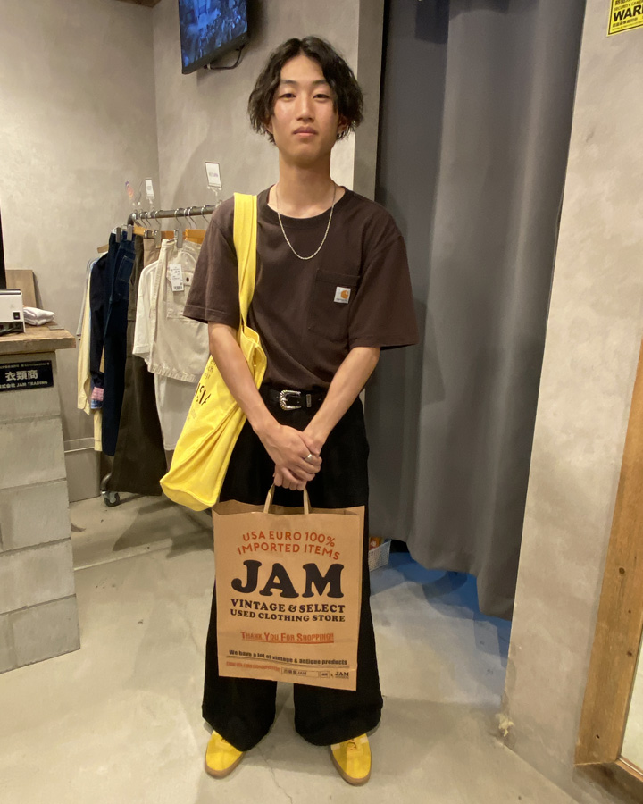 東京から旅行で訪れたという由さん。 元から着ていたんじゃないかと思うほどLevi’sのデニムパンツが似合っていた彼に 本日の来店理由を尋ねると『ズボンが破れちゃって、、、』と笑いながら教えてくれました(笑) 普段から古着も着るという彼は、古着屋JAMは初めてとのこと。 東京へ帰った際は、下北沢店にも行ってみます!と笑顔で宣言してくださりました(笑)