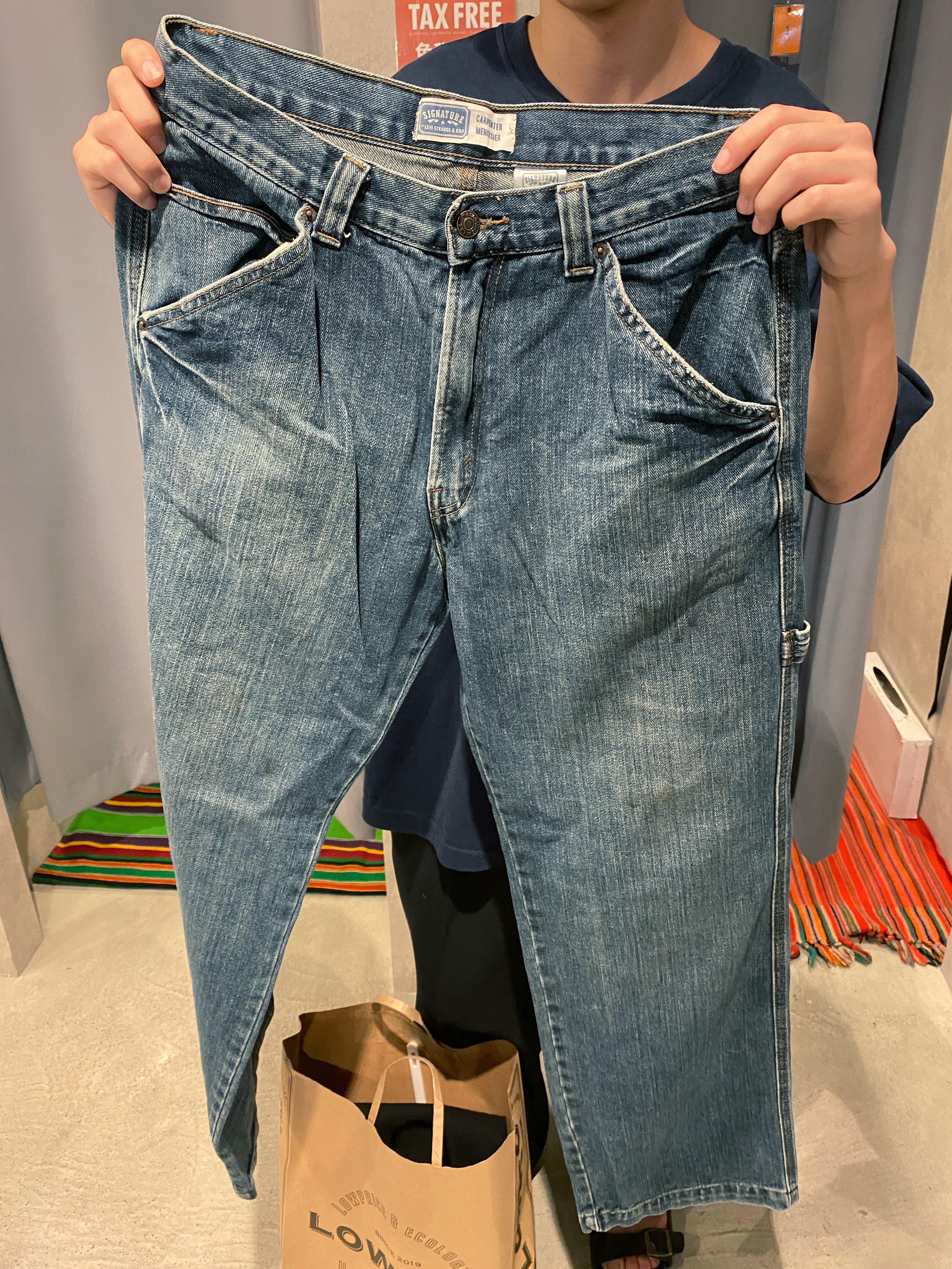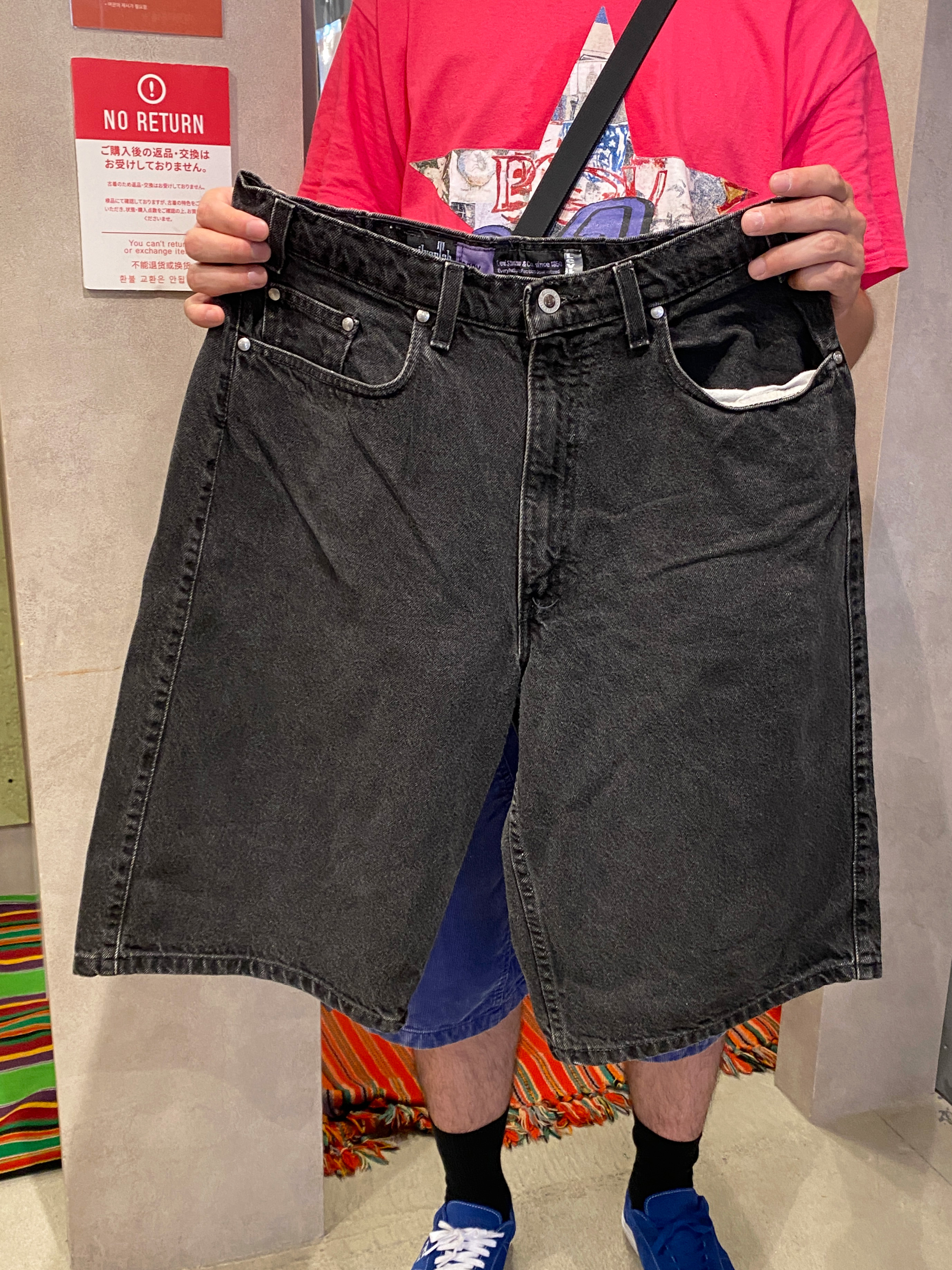今日のお目当ては、「夏に着たいショーツ」。 店員さんに勧められたのがLevi'sのシルバータブ/バギーモデル。 見た目もサイズもピッタリで即決してくださったとのこと。 元々は近隣の古着屋も何軒か回る予定だったところが、 一軒目の古着屋JAMで目的達成し喜んでくださってました!