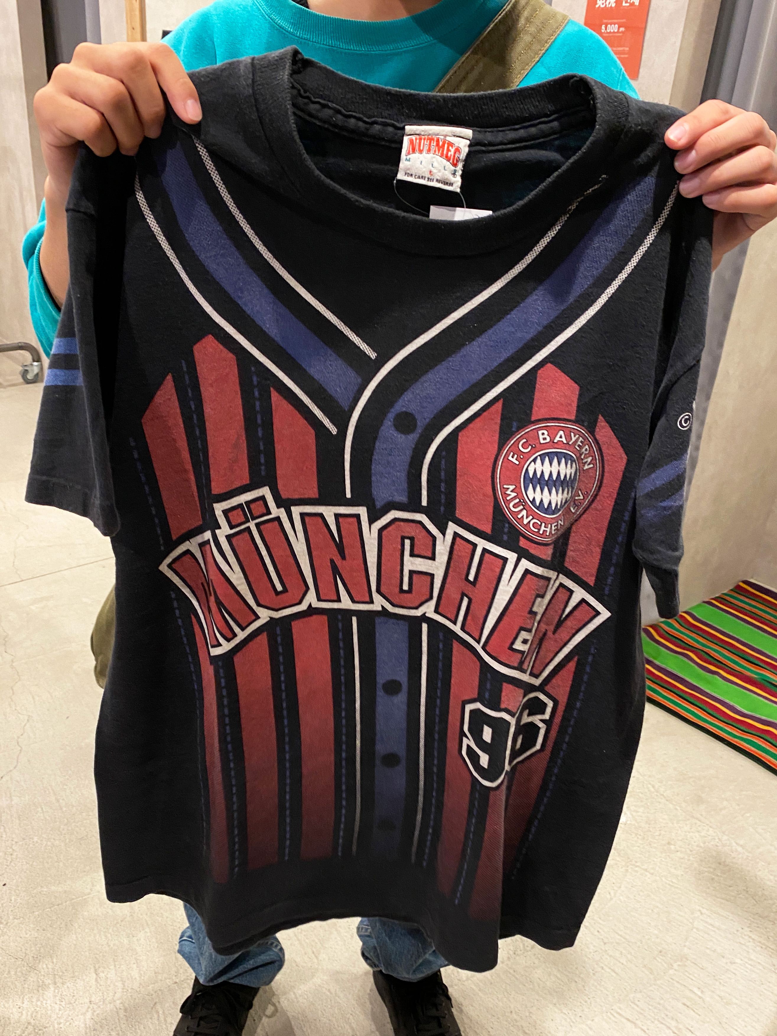 職場から家までの通り道にあるというREVERSE WEAVEを多く取りそろえる古着屋さんを見つけ、毎日のように通うほど古着にのめり込んでいった彼は、そこで出会ったのが44万円のLevi's 507XX 2ndのデニムジャケット。奮発して貯めていた貯金で買ったことをアツく話してくれました! そんな彼は、サッカー好きでドイツのバイエルンのチームユニフォームのTシャツを見つけ、『もう、これしかねえわ!』という運命の出会いで購入してくださりました!