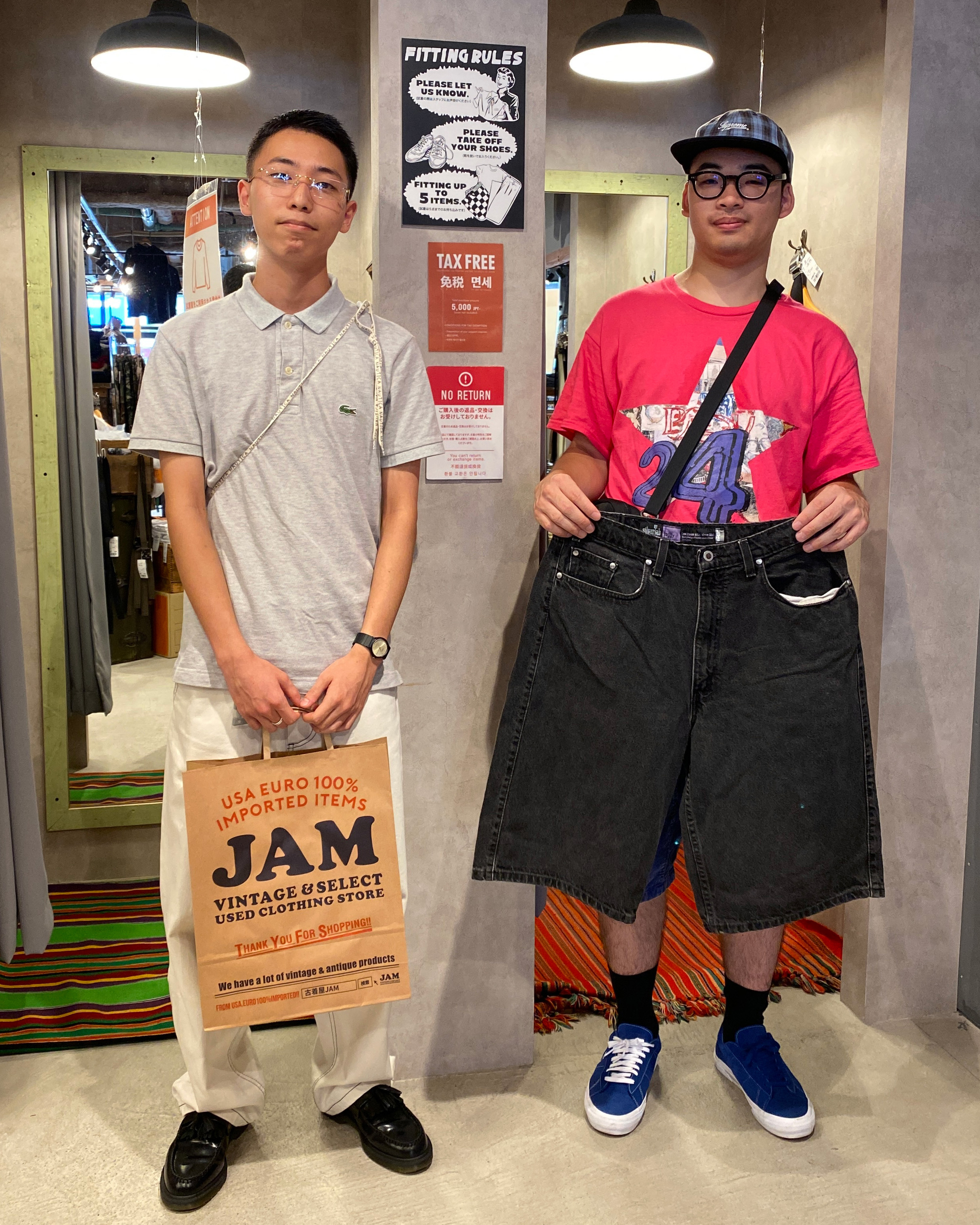 共に東京の大学に進んだという高校の同級生の仲良し2人組。今日は夏休みということで名古屋へ古着屋巡りに来たとのこと!