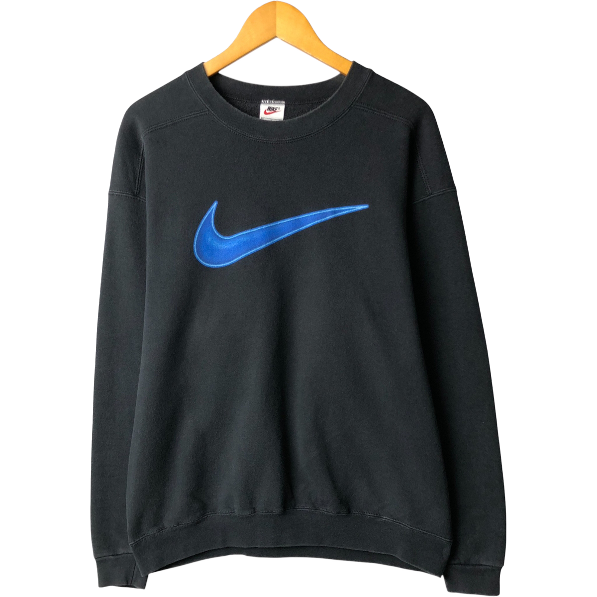 90年代ナイキのUSA製スウェットトレーナーです。胸には大きく立体感のあるスウォッシュロゴがプリントされ、存在感抜群。ゆったりめのシルエットで、Y2Kやテックスタイルなどのストリートコーデにもぴったりな一着です。