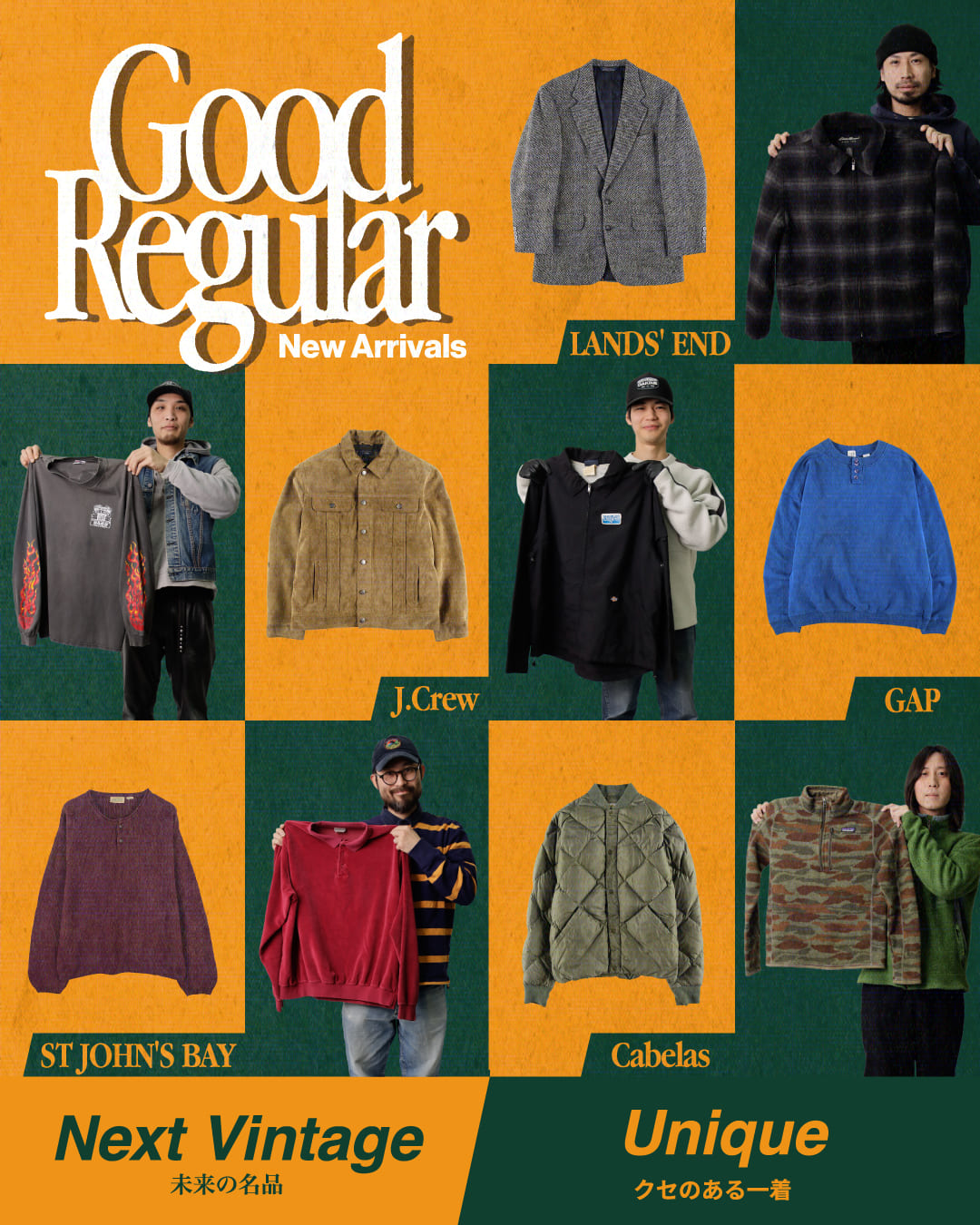 前回大好評だったグッドレギュラー入荷の第三弾。比較的新しい年代を中心に、「Unique」を軸に構成した約150点を一挙に展開します。一癖あるディテールや、どこか引っかかりのあるバランス感覚のアイテムを中心に、今後の評価が楽しみな「Next Vintage」もラインナップ。手に取りやすい価格帯のものも多く、古着に初めて触れる方から、新しいスタイルを探している方まで幅広く楽しめる内容です。