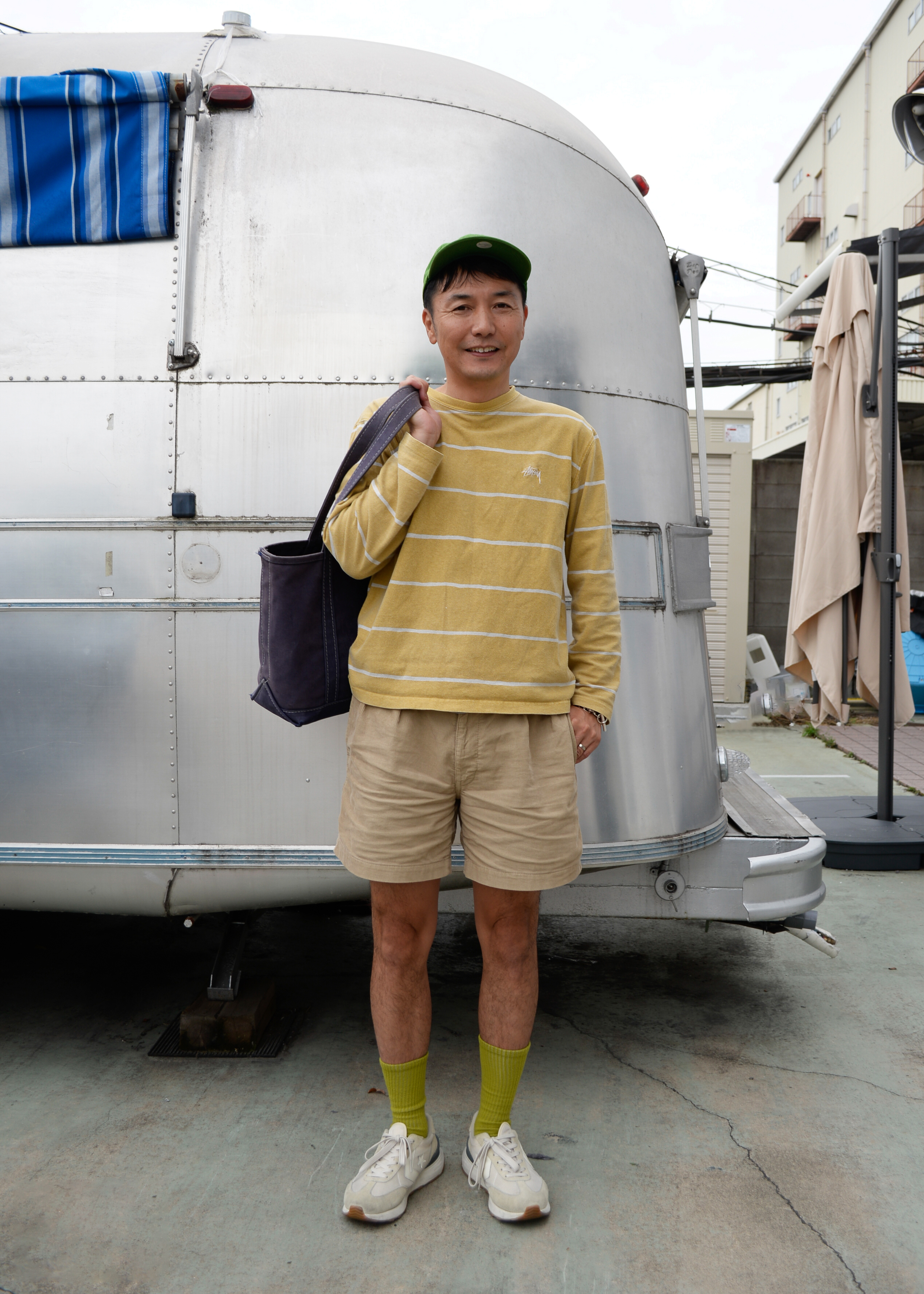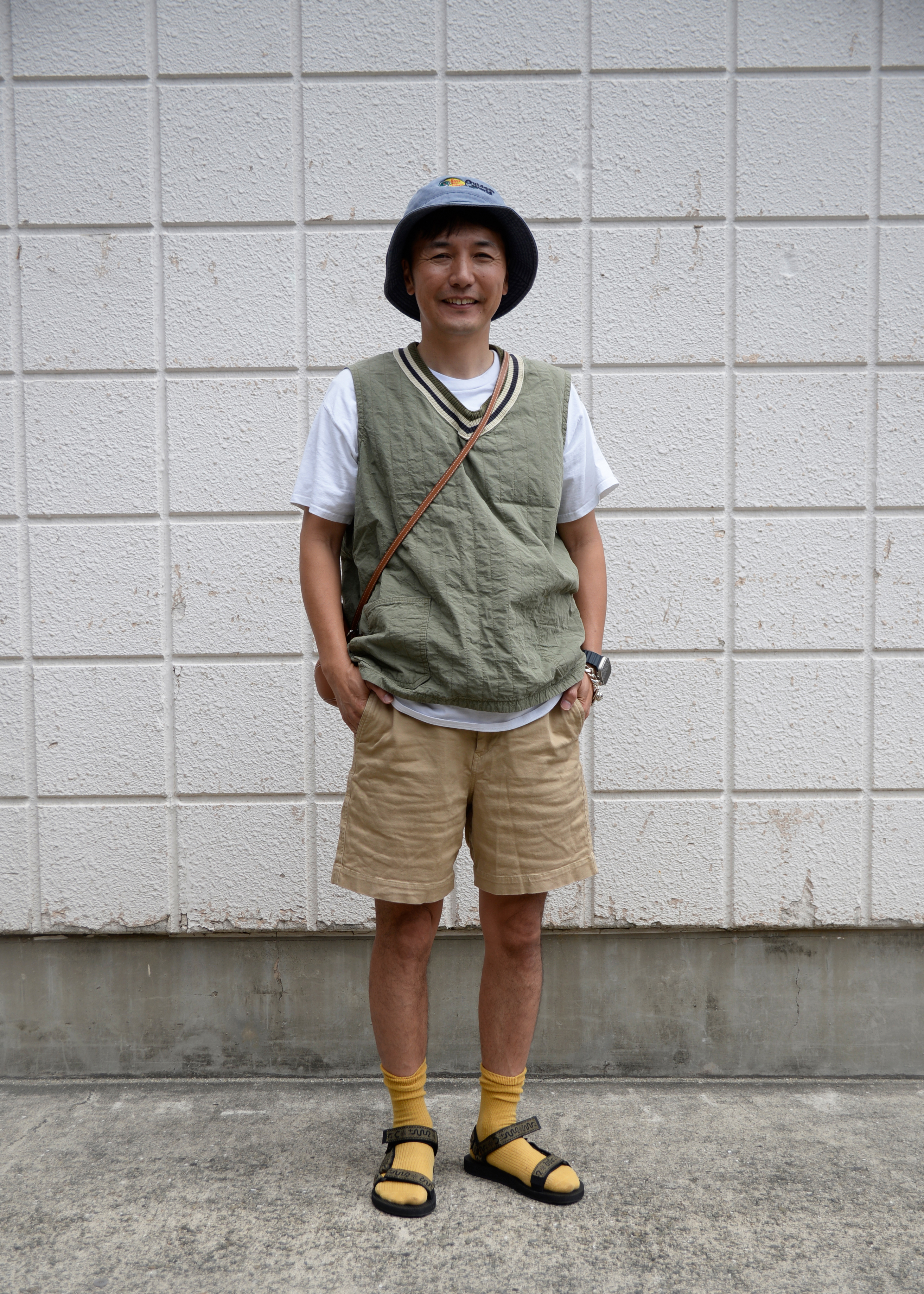 軽快でリラックスした雰囲気を持ちつつ、色使いやアイテムの選び方で個性的なスタイルを表現しています。
