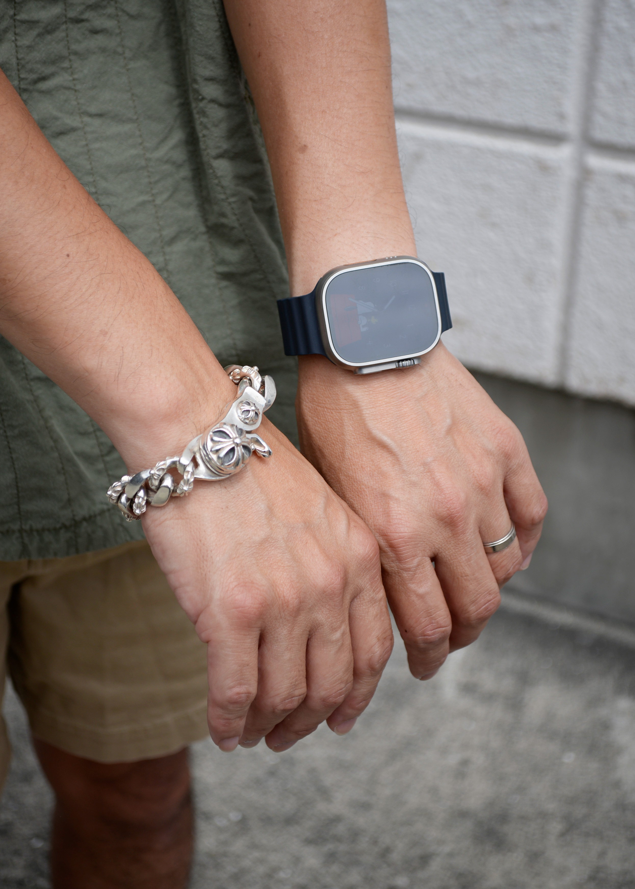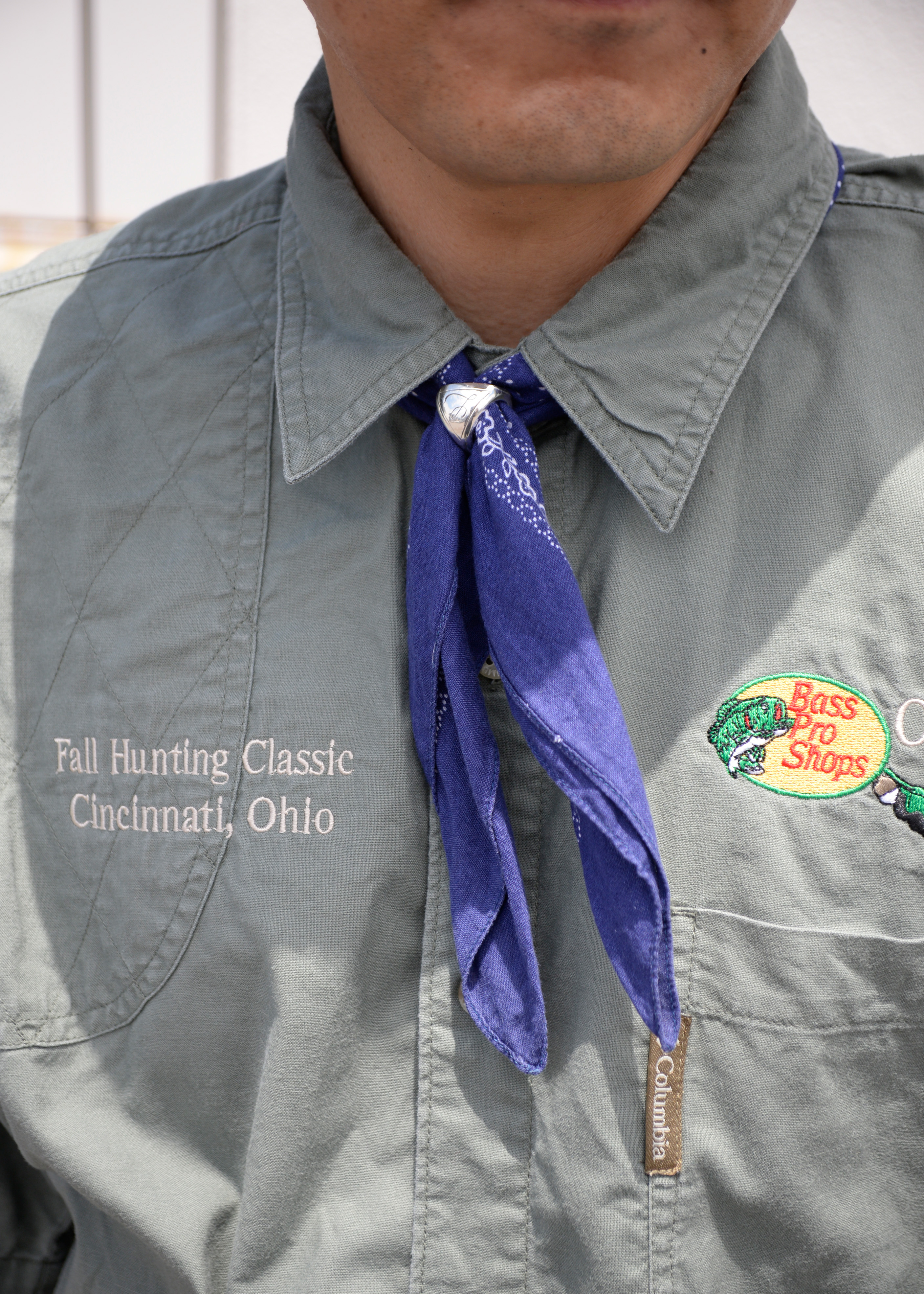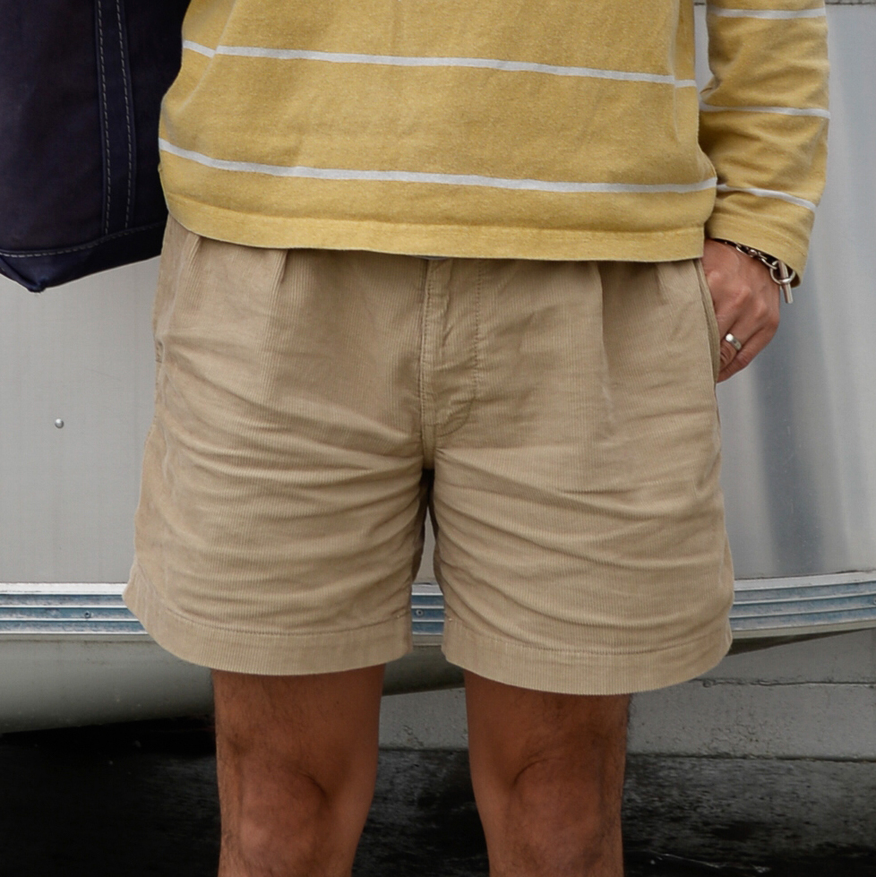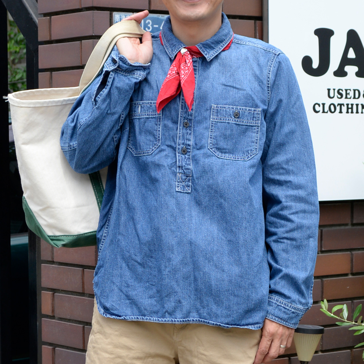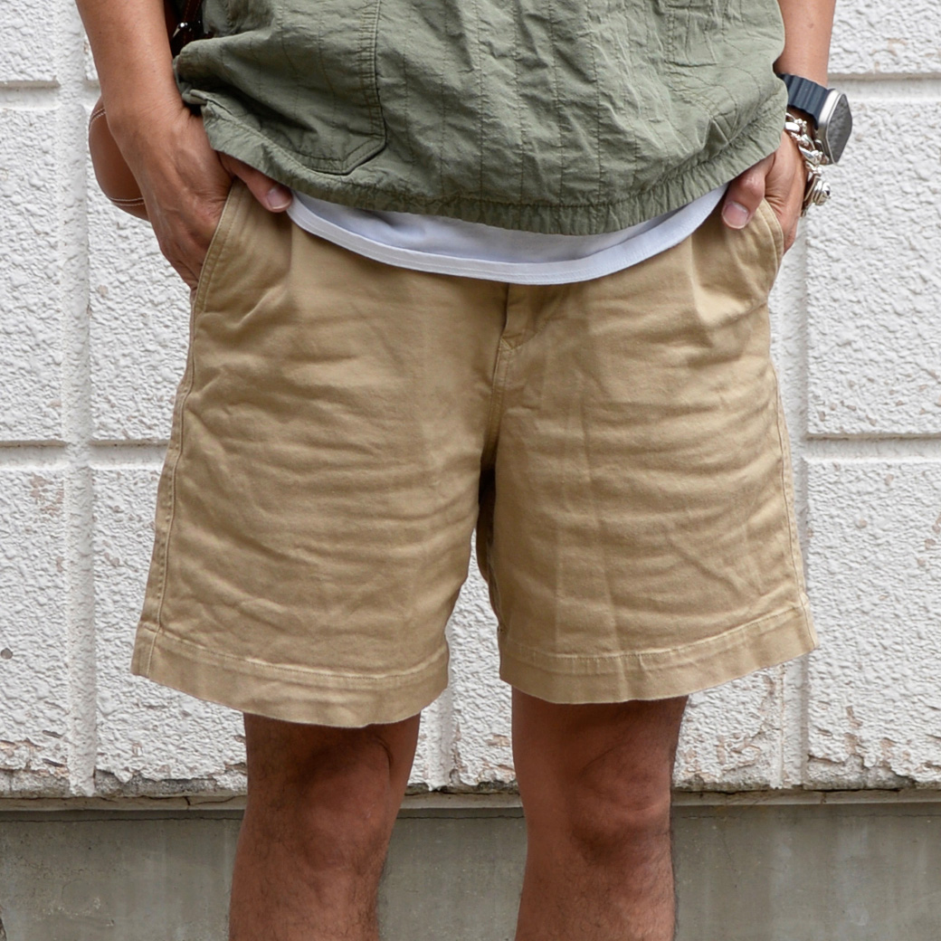 ボトムスはショートパンツでカジュアルな印象ですが、トップスのデニムシャツとバンダナでうまくバランスをとりカジュアルになりすぎないスタイリングになってます。